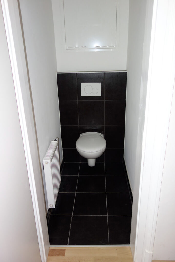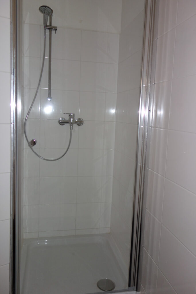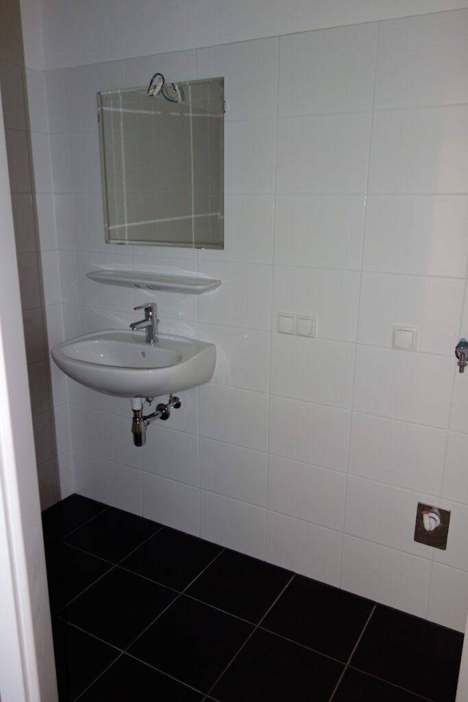 Völlig neu gestaltetes Bad mit Dusche 80/80, Wandfliese weiß, Bodenfliese antrazit, Anschluss für Waschmaschine, seperates WC