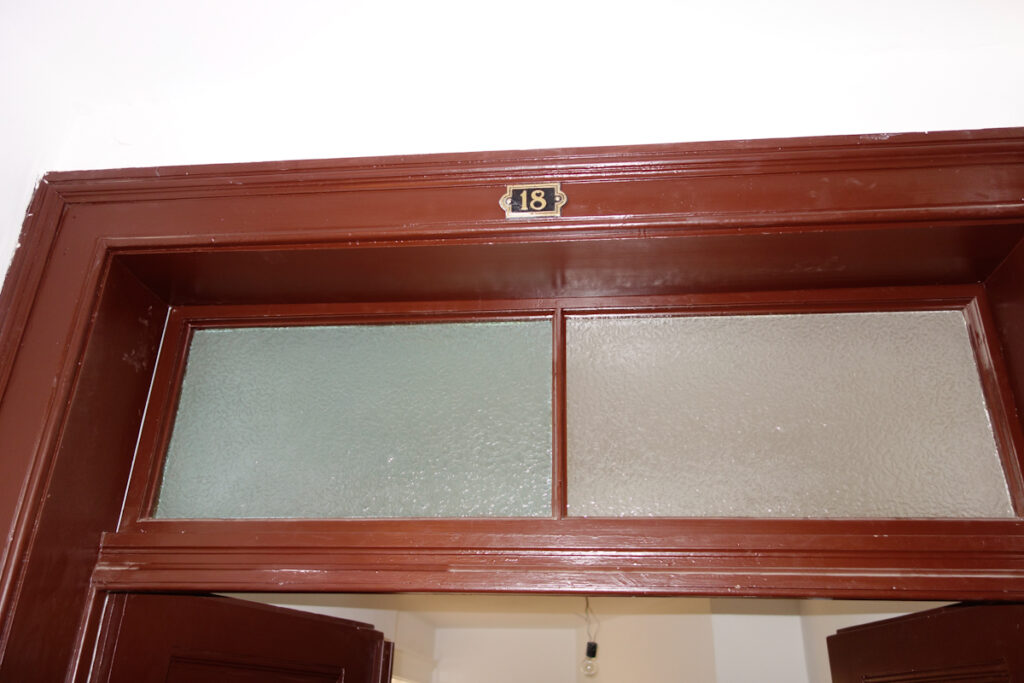 Hohe Räume mit sanierten Altbau Kassettentüren in weiß