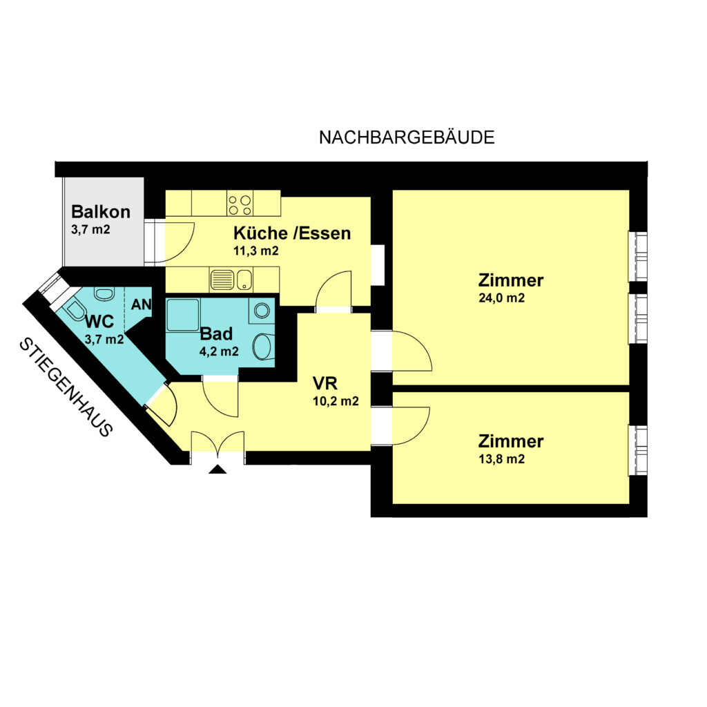 Der Mietpreis enthält die Mietkosten für Wohnung und Kellerabteil, die Möbelmiete für die Küche inkl. Geräte, die Nutzung der SAT-Anlage, die Betriebskosten sowie die Mehrwertsteuer. Die Betriebskosten werden jährlich auf Basis der tatsächlichen Abrechnung entsprechend angepasst und Mehr- bzw. Minderkosten abgerechnet. Zusätzlich zur Miete wird für Heizung und Warmwasser noch ein Heizungsakonto von Euro 90,– eingehoben. Die Abrechnung der Heizkosten erfolgt jährlich verbrauchsgenau für jede Wohnung einzeln auf Basis der Ablesung der jeweiligen Wärmemengen und Wasserzähler.